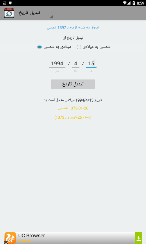 همین الان برنامه تبدیل تاریخ شمسی به میلادی و برعکس را دانلود کنید و از آن استفاده نمایید.