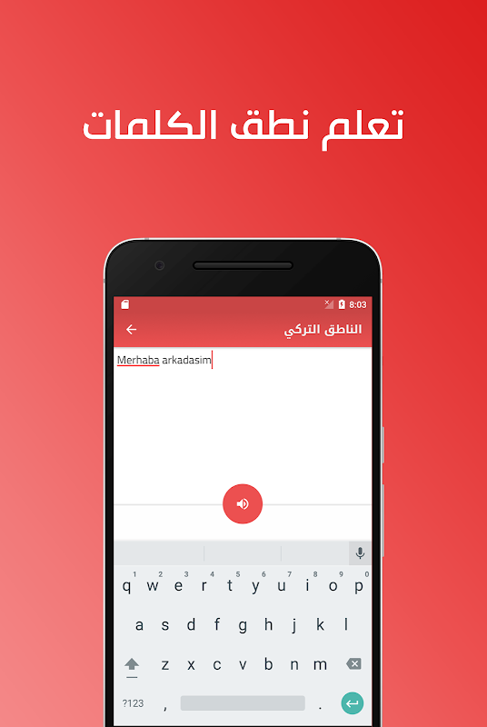 แอปพลิเคชั่นนี้มีส่วนการพูดภาษาตุรกี ซึ่งจะแปลงทุกสิ่งที่คุณเขียนในภาษาตุรกีในช่องข้อความเป็นเสียงเพื่อเรียนรู้ทักษะการฟังและการออกเสียง