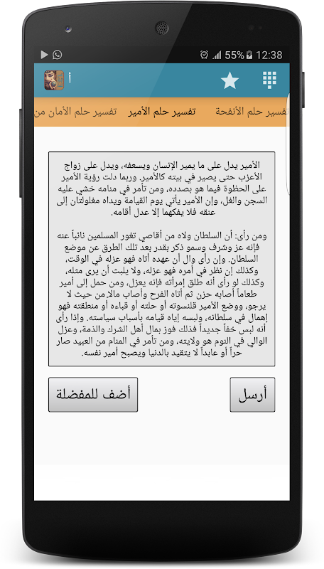 فسر حلمك مع تطبيقنا الذي يمكنكم ايضا من قراءة كتاب تفسير الاحلام لابن سيرين بالحروف وللنابلسي وفق القران الكريم و الحديث الشريف والمكتبة الاسلامية والموسوعة العلمية.