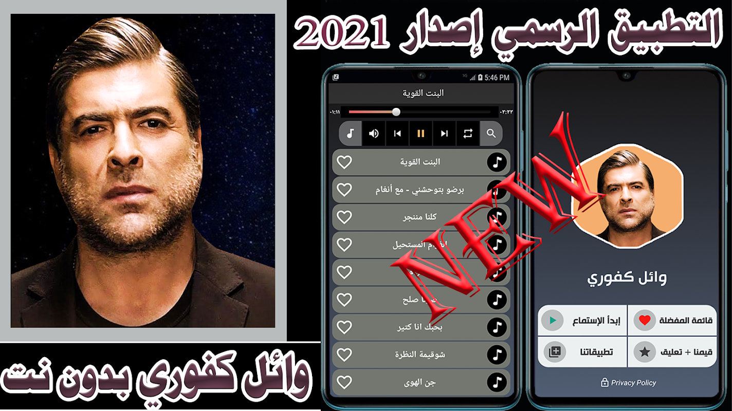 الان اي حد عاوزاغاني اوعايزة اغاني عربية بدون نت نقدم لكم هذا التطبيق الذي يحتوي على باقة من اغاني الفنان وائل كفوري اصدار 2021 بدون نت . يتم تحديث اغاني وائل كفوري بإستمرار حيث يمكنك الاستماع الى جديد الأغاني فور نزولها من خلال هذا التطبيق .