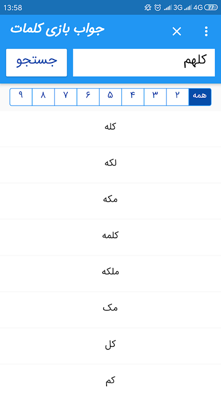 جواب کامل تمامی مراحل آمیرزا،فندق،باقلوا،جدولانه،گردو،پشمک،آفتابه و تمامی بازی های حدس کلمات را در این برنامه می توان یافت.