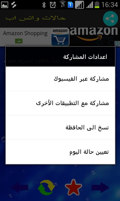 6- يمكنك أيضا اضافة الحالات المفضلة الى المفضلة ومن ثم يسهل عليك مشاركتها بشكل دائم .
