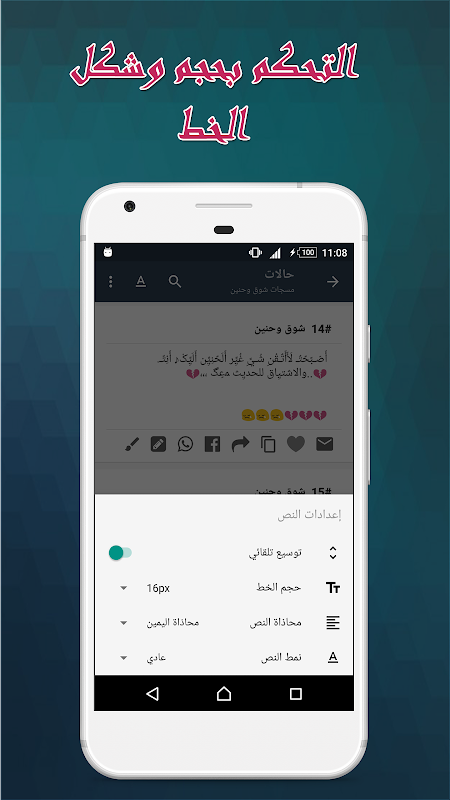يقدم افضل واجدد كلمات وحالات للفيس بوك وللواتس اب وجميع مواقع التواصل الاجتماعي ليتم تبادل المحبة بين الاصدقاء والاحباب والاخوة عبر تصفح القيم الدي تريده وتقوم بنسخ الحالة ولصقها اينما تريد كل ذلك من داخل التطبيق فقط