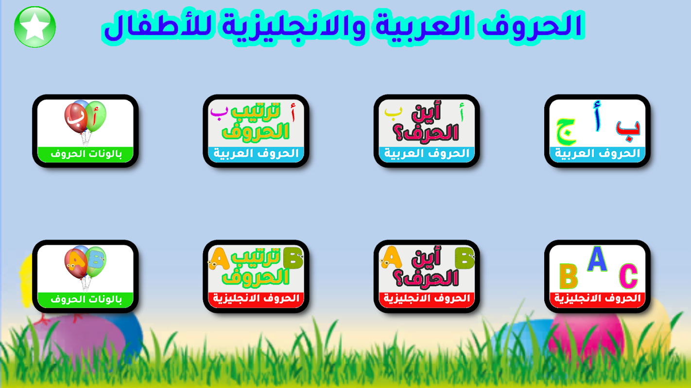 ในแอปพลิเคชันเพื่อการศึกษานี้ เรามีการสอนตัวอักษรภาษาอาหรับให้กับเด็ก ๆ เช่นเดียวกับตัวอักษรภาษาอังกฤษ เนื่องจากแอปนี้มีตัวอักษรภาษาอาหรับทั้งหมด นั่นคือตัวอักษรจาก A ถึง Z นอกเหนือจากตัวอักษรภาษาอังกฤษพร้อมคำ และยังมีแบบฝึกหัดมากมายที่ช่วยจดจำตัวอักษรและคำศัพท์ เช่น การทดสอบตัวอักษรและลำดับของตัวอักษร