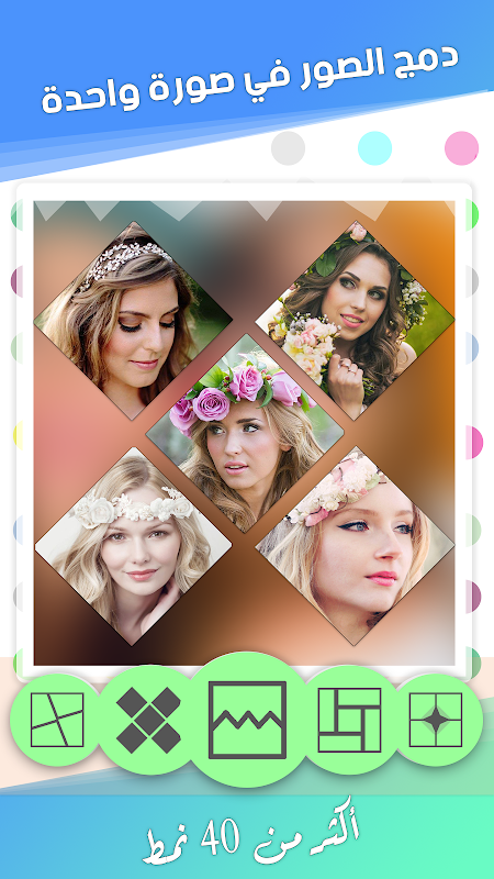يمكنك تطبيق "تجميع الصور" الجمع بين عدة صور في صور واحدة كما يمكنك اضافة العديد من الملصقات و الخلفيات .
