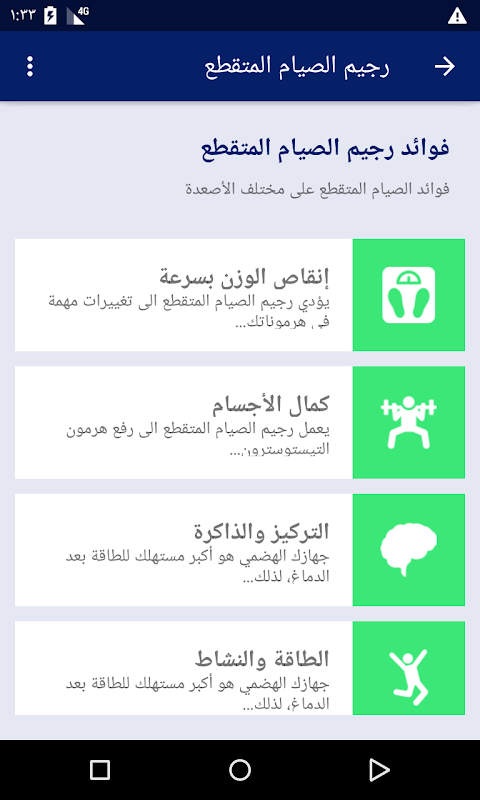 แอปพลิเคชันของการอดอาหารเป็นระยะ ๆ เป็นแอพพลิเคชั่นที่ครอบคลุมทุกสิ่งที่คุณต้องการในการเริ่มอดอาหารหรือการอดอาหารเป็นระยะ ๆ ตามที่คุณต้องการตามประสบการณ์ของการอดอาหารอย่างรวดเร็วเป็นระยะ ๆ โดยคนจำนวนมากทั่วโลก โดยเฉพาะอย่างยิ่งการกำจัดของกระเพาะรูเมนเป็นอาหารที่เร็วที่สุดสามารถรับผลลัพธ์จากสัปดาห์แรกใช่จากสัปดาห์แรก แต่สามวันแรกเพราะการอดอาหารอดไม่ต่อเนื่องไม่ได้เล่นเพื่อลดแคลอรี่ แต่เล่นในการเปลี่ยนแปลงฮอร์โมนเพื่อให้ได้ประสิทธิภาพที่ดีที่สุด กล้ามเนื้อและแน่นอนผลประโยชน์อื่น ๆ เช่นความเข้มข้นที่เพิ่มขึ้นและการปรับปรุง M ...