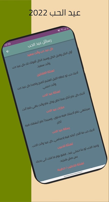 يحتوي التطبيق على رسائل وهدايا عيد الحب بدون نت وإمكانية تحميلها