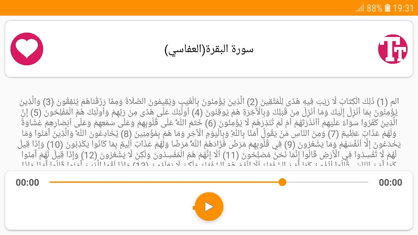 Surat Al-Baqara ในแอปพลิเคชันจะอ่านด้วยเสียงของชาวชีคอพยพที่มีชื่อเสียงที่สุดซึ่งเก่งในการท่อง Surat Al-Baqarah