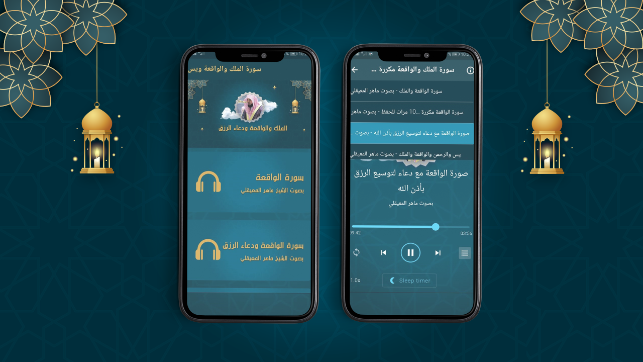 ✔ความสามารถในการฟังแอปพลิเคชั่นของ Surat Al-Waqi'ah ด้วยเสียงของ Sheikh Maher Al-Muaiqly และทำงานบนอุปกรณ์พร้อมกัน