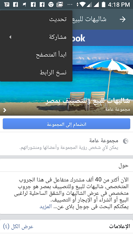 شارك الآن أكثر من 70 الف مشترك متفاعل بهذا الجروب يعرضون ويطلبون مئات العقارات الساحلية للبيع والايجار فى مصر.