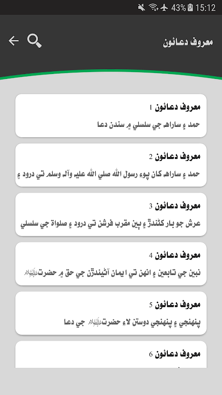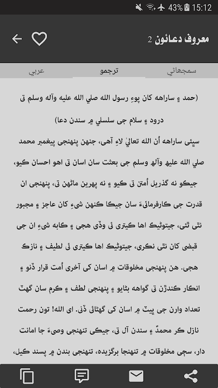 5. ڪنهن به دعا جي عربي متن، سنڌي ترجمي ۽ سمجهاڻي کي ڪاپي ڪرڻ سان گڏ سوشل ميڊيا جي ڪنهن به نيٽ ورڪ تي شيئر ڪرڻ جي سهولت کي به شامل ڪيو ويو آهي.
