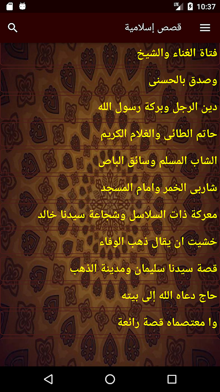 แอปพลิเคชั่นนี้เต็มไปด้วยเรื่องราวของอิสลามที่สวยงามหลากหลายและมีอิทธิพลเพื่อเพิ่มคุณค่าให้กับทุกคนที่อ่านประเภทของเรื่องราว: