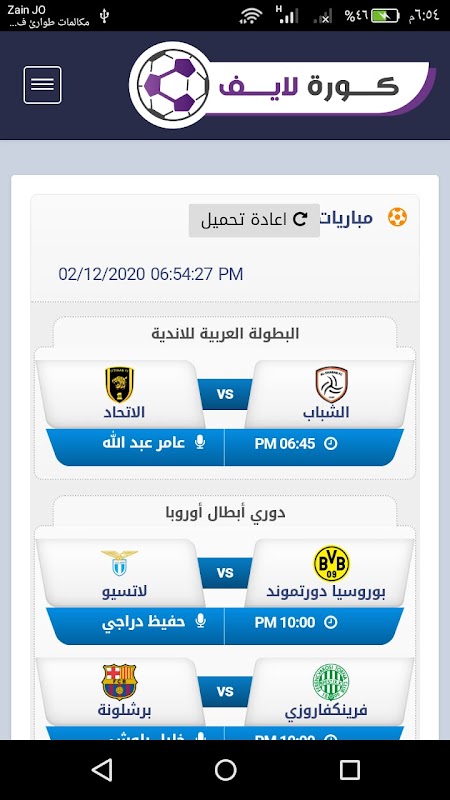 Kora Live application _ live broadcast of the matches displays all matches with results