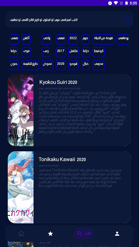 البحث علي الانمي بالاسم العربي او الانجليزي او التاريخ