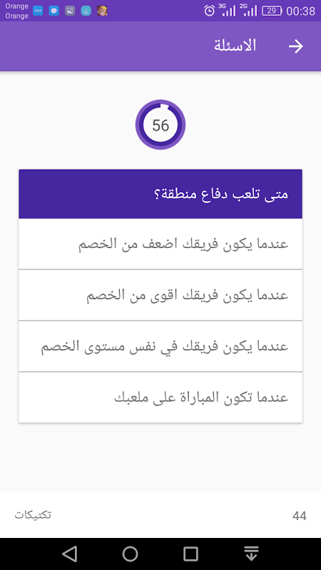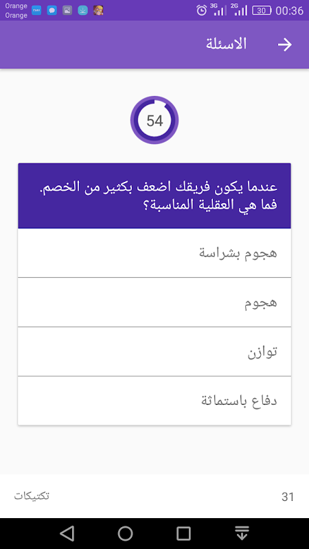عند انتهائك من الاختبار ستعرف الحل لجميع الاسئلة واين اخطأت مع اعطائك الجواب الصحيح. وهكذا بامكانك استثمار المعلومات الجديدة المكتسبة في وضع تكتيكك لمباراتك القادمة.