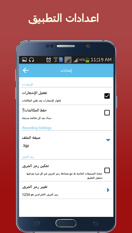 تطبيق مسجل المكالمات الهاتفية بسرية وبجودة عالية مجانا لتسجيل جميع المكالمات الصادرة و الواردة call recorder يمكنك تعطيل او تفعيل التسجيل في اي وقت تريد.