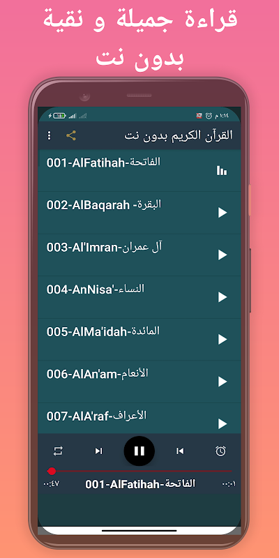 แอปพลิเคชั่น Noble Qur'an ด้วยเสียงของ Mansour Al-Salmi ช่วยให้คุณฟัง Surahs ทั้งหมดของ Noble Qur'an หลังจากเลือกชื่อ Surah ที่คุณต้องการฟังซึ่ง Sheikh Mansour Al-Salmi ท่องในแต่ละ Surah ของ Noble Qur'an โดยคลิกที่ Surah ถัดไปหรือ Surah ก่อนหน้าเนื่องจากโปรแกรมแสดงเวลาของ Surah แต่ละ Surah เพื่อให้คุณทราบถึงเวลาอย่างเต็มที่