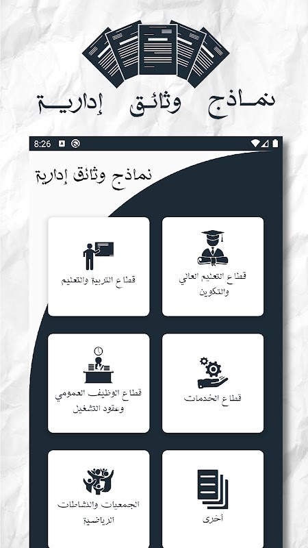 تطبيق نماذج وثائق إدارية الجزائرية هو تطبيق مجاني ومتجدد يعمل من دون انترنت، يحتوي على مجموعة كبيرة من نماذج طلب خطي، تصريح شرفي، تعهد و نماذج شهادات.
