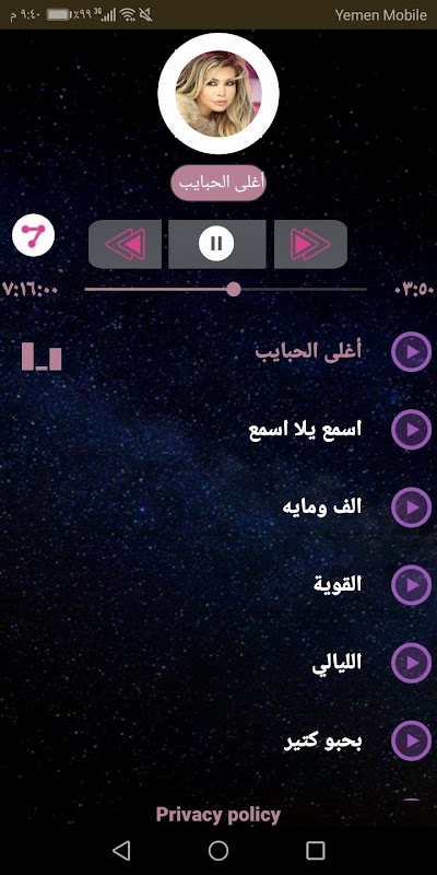 وفي الاخير نشكرك على اختيارك تطبيق نوال الزغبي من اجل الاستماع الى الاغاني الموجودة.