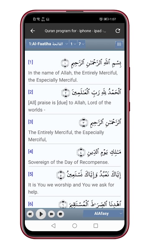 - การอ่านอัลกุรอานพร้อมคำบรรยายของ Hafs, Warsh, Duri, Shuba