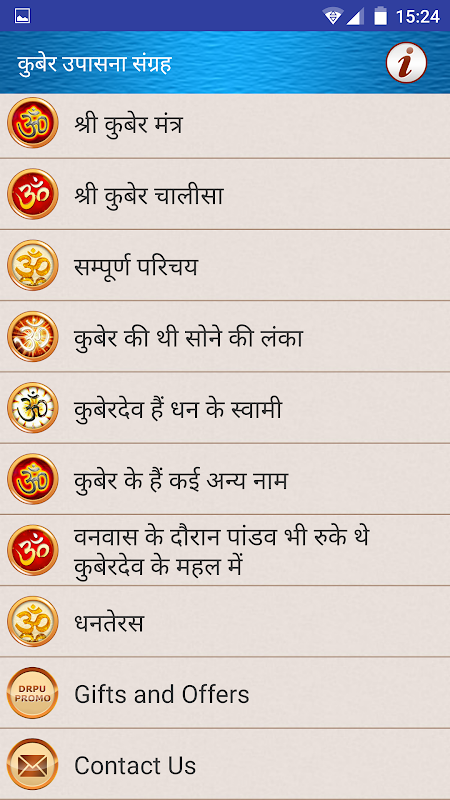 นี้เป็น app หุ่นยนต์ฟรีซึ่งมีคอลเลกชันที่สมบูรณ์ของ Aarti katha chaalisa มนต์และ Pooja sadhna นันของเจ้านาย Kuber พระเจ้า Kubera เป็นหนึ่งในที่สุดบูชาพระเจ้าของศาสนาฮินดู Pantheon และถือเป็นเทพเจ้าแห่งความมั่งคั่งและเหรัญญิกของพระเจ้า เขาเป็นตัวแทนที่แท้จริงของความมั่งคั่งความเจริญรุ่งเรืองและมีความสุข