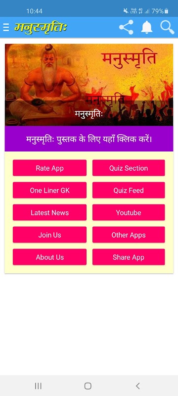 इस मोबाइल ऐप में संस्कृत पुस्तक मनुस्मृतिः का संकलन किया गया है।