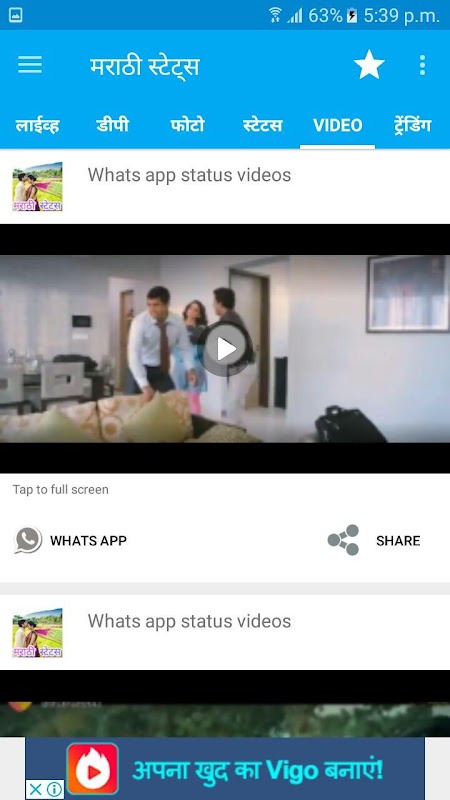 Marathi what's app videos status, video status for love, video status for attitude,video status for sad, imotional etc.