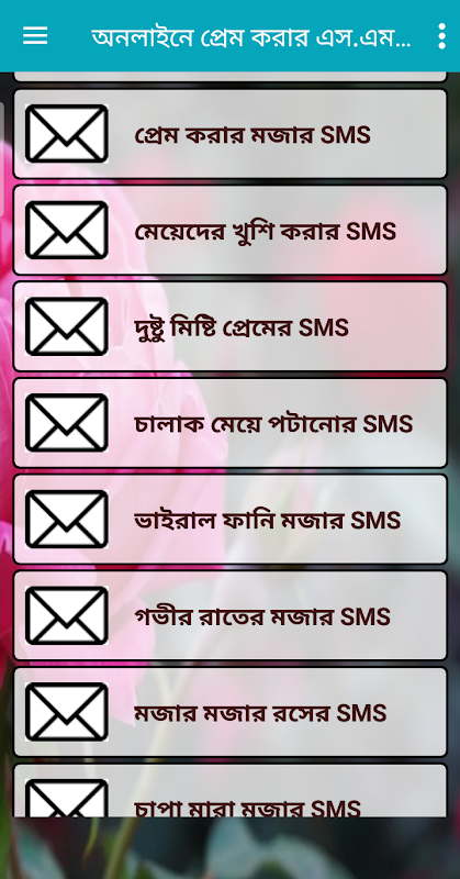 এই অ্যাপসটি যে সব এসএমএস গুলো আছে আপনি যে কোন মেয়ে কে পাঠালে মেয়েরা আপনার প্রতি ভালোবাসার জন্য দুর্বল হয়ে যাবে । এবং অপনার ভালোবাসা হয়ে যাবে ।