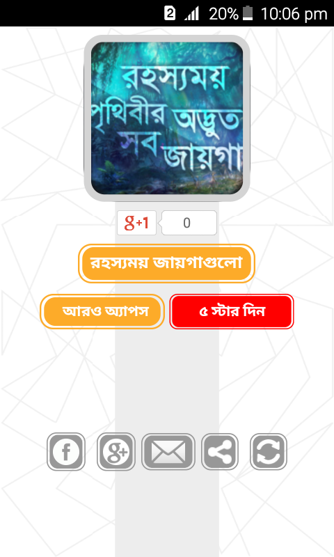 আমাদের কি জানতে ইচ্ছা করে না নায়াগ্রা জল্প্রপাত দেখতে কেমন ? পৃথিবী র সবচেয়ে সুন্দর দ্বীপ কোন টা ? পৃথিবী র এই অদ্ভুত জায়গা গুলো র রহস্য নিয়ে তৈরি এই বাংলা অ্যাপ স টি।
