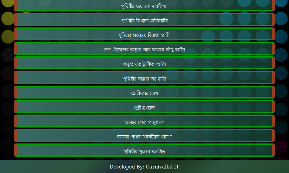 আমরা স্বভাবতই এই রকম অদ্ভুত ধরনের জিনিস দেখতে ও জানতে পছন্দ করি। আমাদের এই এপ্লিকেশনে পৃথিবীর নানাপ্রান্তে ছড়িয়ে ছিটিয়ে থাকা অদ্ভুত জিনিসগুলো নিয়ে বিস্তারিত বর্ননা ও রিলেটেড ছবি দিয়ে সাজিয়েছি।
