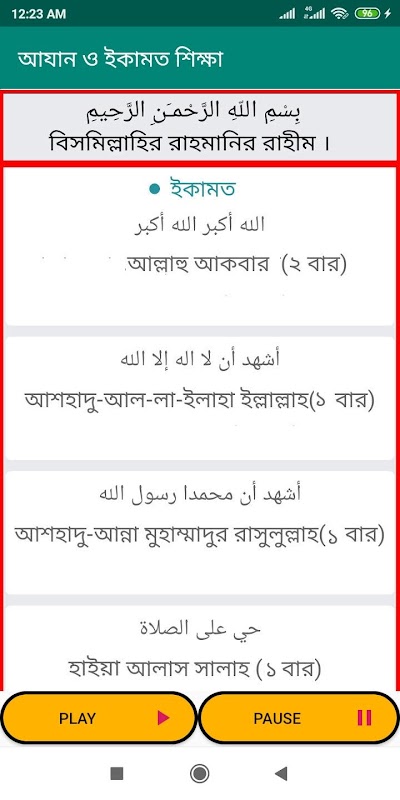 ข้อมูล আযান ও ইকামত(অডিও সহ) এর নিয়ম-কানুন APK
