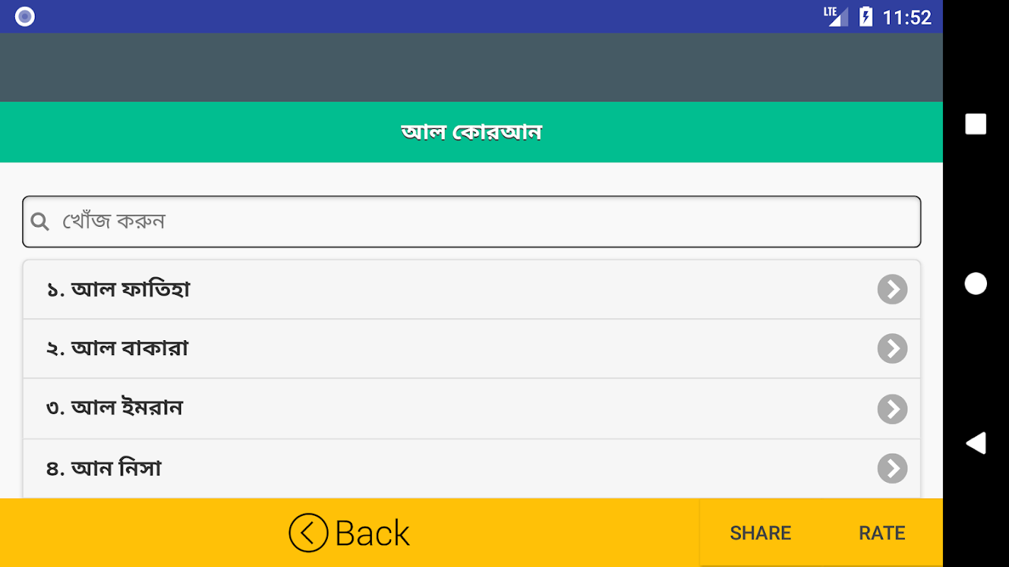 มีการแปลแต่ละข้อ การออกเสียงภาษาอาหรับและความหมายเบงกาลี apt เสียงที่มีเงินของ Al Qur'an นั้นใช้งานง่ายมาก มีตัวเลือกการค้นหา อัลกุรอานทั้งหมดจะอยู่ในกระเป๋าของคุณด้วยแอพนี้