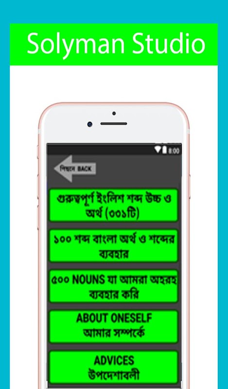 So learn english vocabulary using this application.word book english to bangla is a offline english to bangla vocabulary for them who wants to learn english word in Bangla.This kind of offline english to bangla dictionary app . We you use it anytime you want without data connection.To improve English vocabulary. In this application 5000+ vocabulary words with meaning bangla and english. If you want to expert in spoken english to bengali then you must need to use this application.Beside spoken english this app helps you to improve in english vocabulary. It also help you to translate any word into english to bangla or bangla to english. In this application we organize many words with pronunciation and bangla meaning.You will find english vocabulary learning is very easy and simple through many category.