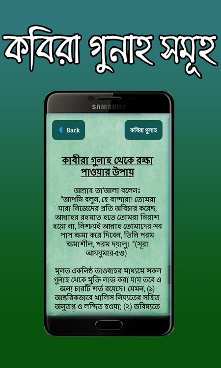 ‘‘কবিরা গুনাহ সমূহ-Kobirah gunah somuho” এ্যাপসটিতে কবিরা গুনাহ গুলো দেয়া হয়েছে
