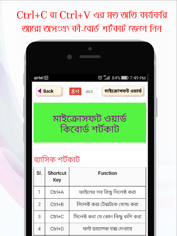 Microsoft Word and Microsoft Excel are two essential software of microsoft office package which are widely used in any official work. These could be used for Bangla as microsoft office word bangla font are available nowadays. Previously microsoft office word bangla was not easy to use. So, if you want to learn microsoft office bangla you’ll have to collect some microsoft excel tutorial in bangla. These software packages offer numerous keyboard shortcuts and these shortcut keys for computer keyboard are used to apply different functionality and streamline the workflow. For example: a shortcut master can save document by just pressing ‘Ctrl+S’ in a second. Besides computer shortcut keys, there are also shortcut keys for mobile which are also added in this bangla apps for android.