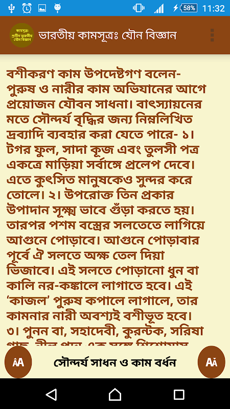 প্রাচীন ভারত ছিলো ধর্ম দর্শন, জ্ঞান গরিমায় সমৃদ্ধ এক জনপদ। এখানে যেমন স্ফূরণ ঘটেছিলো দার্শনিকতার, যেমন বিকাশ লাভ করেছিলো কাব্য ও সাহিত্য, তেমনই আগ্রসরমান ছিলো ভারতীয় যৌন বিজ্ঞান। প্রাচীন ভারতীয় যৌন শিক্ষার সর্বাধিক উল্লেখযোগ্য উদাহারণ কামসূত্র। বাৎসায়নের এই অমূল্য কীর্তিটি এখনও যৌন বিজ্ঞানীদের নিকট বিস্ময়। আমরা প্রাচীন সংস্কৃত ভাষায় রচিত এই বিখ্যাত গ্রন্থটিকে আধুনিক বাংলা ভাষায় প্রাঞ্জলভাবে রূপান্তর করে এই এপলিকেশনটি প্রকাশ করেছি।