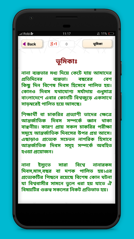It is very important for everyone to know about all special days to remember. This app is focused on Special Days in Bangladesh & World ,international days ,World International and Special Days Calendar ,Bangladesh Government Holiday ,Victory Day Of Bangladesh Photo Frame ,Victory Day ,Public Holidays Calendar of Bangladesh etc. Hope everyone will love this app.