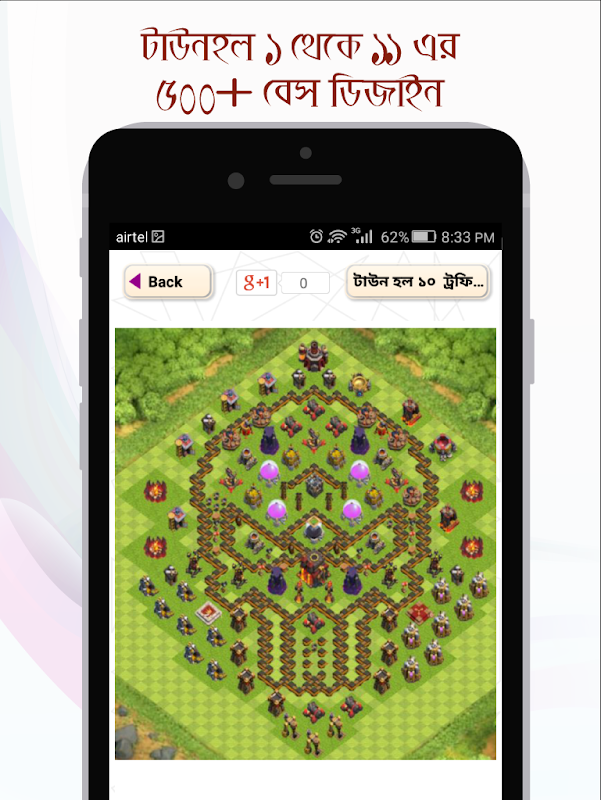 This is an Clash of clan base builder help app where best clash of clans base designs are given as screenshots.