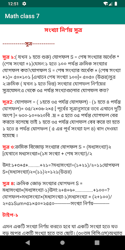 ক্লাস সেভেন গণিত সমাধান এবং গণিতের সকল সূত্র
