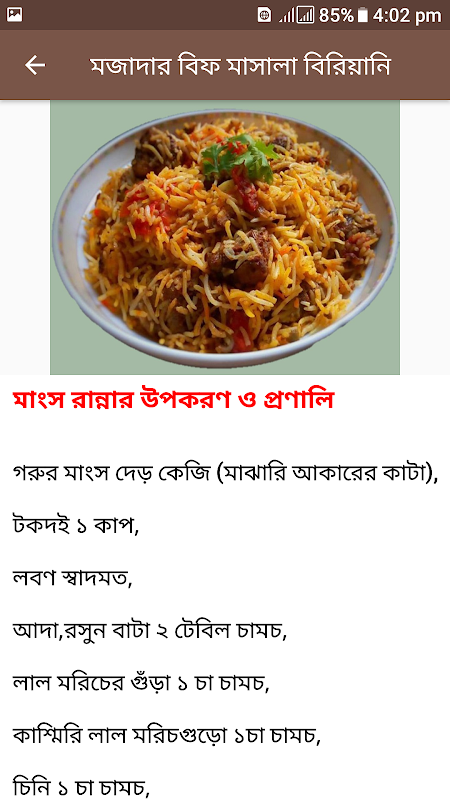 ข้อมูล গরুর মাংসের বিরিয়ানি ও কাবাব রেসিপি APK