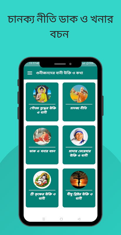คำพูดและคำพูดของผู้นำและนักการเมืองบางคน เช่น Bangabandhu Sheikh Mujibur Rahman, Napoleon และ Nelson Mandela คำพูดและคำพูดของนักวิทยาศาสตร์เช่น Einstein และ Socrates คำพูดและคำพูดของศิลปินเช่น Lalon Shah คนจริงๆ เช่น Bill Gates, Steve Jobs, Jack Ma คำคมและคำพูดของผู้ประสบความสำเร็จในชีวิต คำพูดและคำพูดของผู้นำศาสนา เช่น พระเยซูคริสต์ พระพุทธเจ้าองค์ พระกฤษณะ นอกจากนี้ในแอพนี้ยังมีการเพิ่มคำพูดและคำพูดอันมีค่าของ Gunijans อีกด้วย คำพูด คำพูด และถ้อยคำอันทรงคุณค่าของผู้สูงศักดิ์ในระดับต่างๆ เหล่านี้สามารถมีบทบาทสำคัญมากในชีวิตของเรา คำพูดและถ้อยคำของปราชญ์เหล่านี้สามารถนำการเปลี่ยนแปลงเชิงบวกมาสู่ชีวิตของคุณได้