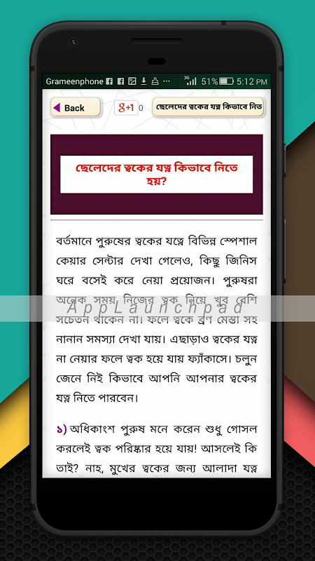 ছেলেদের ত্বক ফর্সা করার উপায়, ছেলেদের রুপচর্চা, মুখের দাগ সমস্যার সমাধানের পদ্ধতি দিয়ে এই অ্যাপটি সাজানো হয়েছে।ছেলেদের ত্বক উজ্জল, ফর্সা, ও সুন্দর সকলেই চায়। নিজেকে সবসময় সুন্দর ও আকর্ষণীয় রাখাটা যেন জীবনেরই একটা অংশ ফর্সা, উজ্জল ত্বক মানুষের সৌন্দর্যকে বহুগুণে বৃদ্ধি করে। সে সকল উপায় দিয়েই সাজানো হয়েছে ছেলেদের ত্বক ফর্সা করার উপায় অ্যাপটি।আপনি নিয়মিত রূপচর্চা করুন নিজেকে সুন্দর রাখুন আজই অ্যাপটি ডাউনলোড করুন।