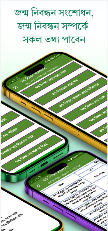 แอพนี้จะช่วยให้คุณตรวจสอบการลงทะเบียนเกิดของคุณและแก้ไขปัญหาทุกประเภทเช่นชื่อผิดวันเดือนปีเกิดผิดชื่อผู้ปกครองผิด คุณสามารถทราบเกี่ยวกับกฎสำหรับการทำและแก้ไขการจดทะเบียนเกิดในบังคลาเทศ