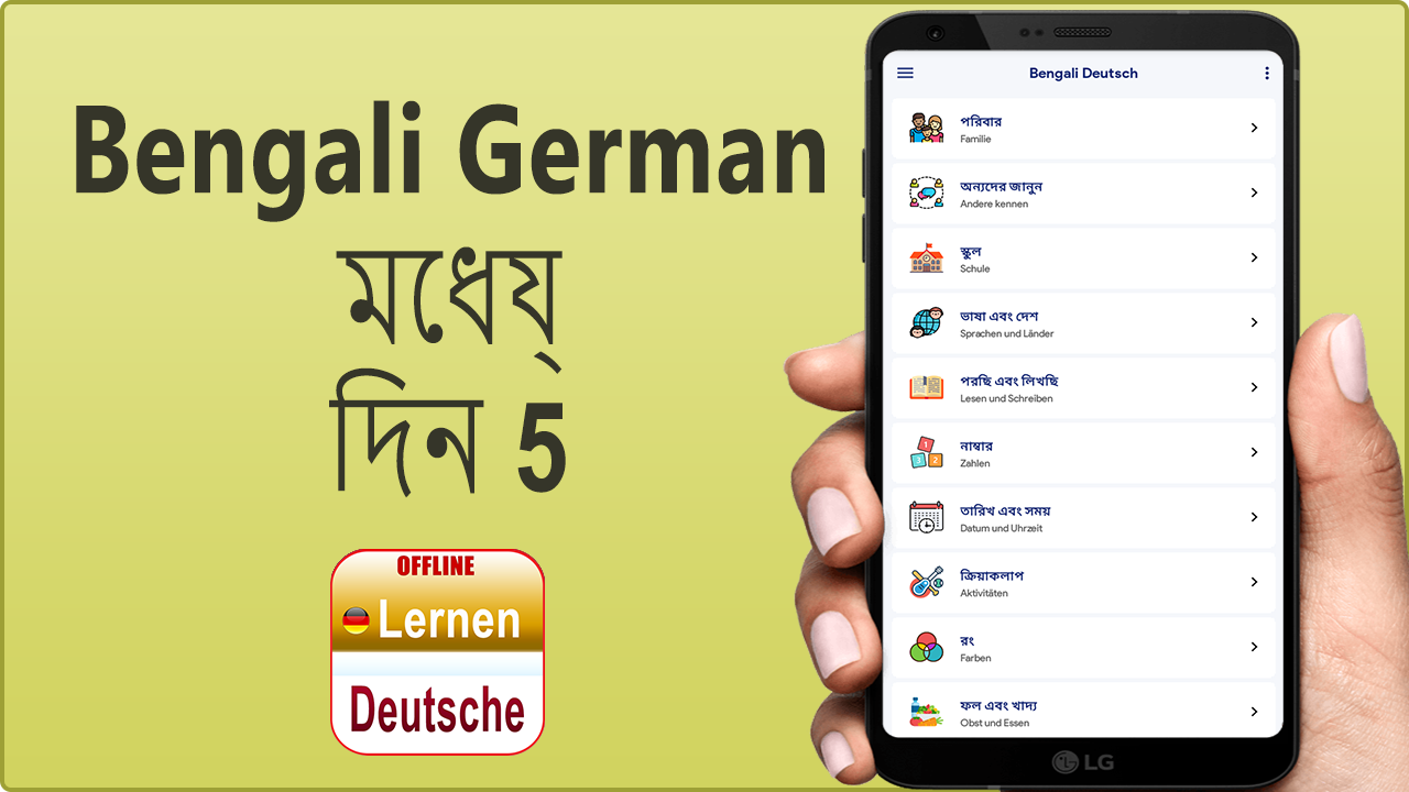এই অ্যাপ্লিকেশন দিয়ে জার্মান শেখা অধিক 5000 জার্মান শব্দ এমনকি 15দিন জার্মান কথা বলতে এটা ব্যবহার করে দেখুন, জার্মান অফলাইন অ্যাপ্লিকেশন পূর্ণ এবং বিনামূল্যে শিখতে দিতে সাহায্য করবে, শুধু একটি মজা.