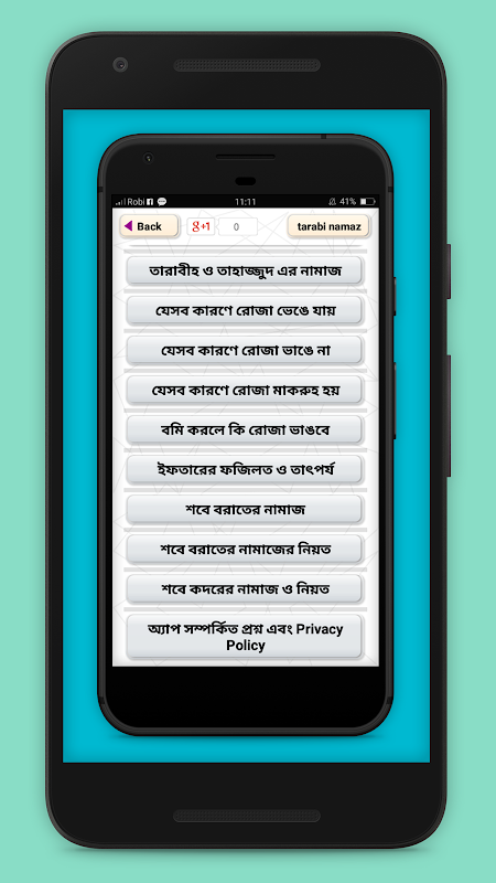 এই অ্যাপ টির মূল বিষয় হচ্ছে তারাবির নামাজের নিয়ম,দোয়া ,ইফতারের দোয়া ,শবে বরাতের ফজীলত ও আমল ইত্যাদি। মুসলমান দের জীবনের সবচেয়ে গুরুত্বপূর্ন হচ্ছে পবিত্র ঈদ উল ফিতর ও ঈদ উল আজহা। দীর্ঘ ৩০ দিন এর কঠিন সাধনা ও রোজা রাখার পর আসে ঈদ উল ফিতর এর আনন্দময় মুহূর্ত। এই দীর্ঘ ৩০ দিন মুসলিমরা সেহেরি,ইফতার, তারাবীহ নামাজ ইত্যাদি সঠিক নিয়মে পালন করে। আল্লাহ পাকের সান্নিধ্য ও সন্তুষ্টি লাভের জন্য নামাজ ও রোজা, দোয়া ও জিকির এর কোনও বিকল্প নাই।