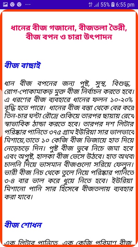 Paddy Expert App เป็นโซลูชัน A-Z สำหรับการเพาะปลูกข้าวเปลือก รายละเอียดแอป BRII และ BINA คิดค้นพันธุ์ข้าว การเตรียมเมล็ดพันธุ์ เทคนิคการปลูกข้าว การฉีดวัคซีนต้นข้าว การใส่ปุ๋ย การชลประทาน การควบคุมวัชพืช การควบคุมโรคข้าว การควบคุมศัตรูพืช และปัญหาธาตุอาหารของข้าว อธิบายไว้ หลังจากที่เห็นภาพหรือคำอธิบายของแมลงและโรคที่เป็นอันตรายของข้าวที่ติดอยู่ในแอป หลังจากระบุโรคและแมลงที่ถูกต้องแล้ว คุณสามารถควบคุมโรคและแมลงของข้าวได้ผ่านการจัดการศัตรูพืชแบบบูรณาการ หากไม่ได้ผล หากอัตราการเกิดโรคและแมลงในข้าวมากกว่าร้อยละที่กำหนด วิธีสุดท้ายคือการใช้สารกำจัดศัตรูพืชที่เหมาะสมในปริมาณที่เหมาะสมผ่านการจัดการควบคุมสารเคมี อย่างไรก็ตาม มีการเน้นที่การจัดการศัตรูพืชแบบบูรณาการในแอปมากขึ้น ในแอปนี้ คุณจะสามารถทราบเกี่ยวกับการควบคุมวัชพืช พันธุ์ข้าวบรีและข้าวที่ไม่ได้ประดิษฐ์ตามฤดูกาล รวมถึงระยะและระยะของการเจริญเติบโตของข้าว