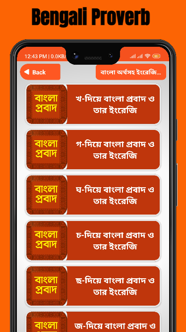 แอพนี้มีคอลเล็กชั่นที่ชื่นชอบและเป็นประจำโดยใช้สุภาษิตเบงกาลีเช่น ภาษาเบงกาลีเป็นสุภาษิตภาษาอังกฤษและสุภาษิตภาษาอังกฤษเป็นภาษาเบงกาลีมีให้บริการสำหรับผู้พูดภาษาอังกฤษและภาษาเบงกาลี หนึ่งสามารถพัฒนาทักษะการพูดโดยการแสดงสุภาษิตภาษาอังกฤษเหล่านี้เป็นกำไล ด้วยการพูดสุภาษิต (โพรบภาษาอังกฤษ) ทุกคนสามารถดึงดูดความสนใจของผู้อื่นได้อย่างง่ายดาย