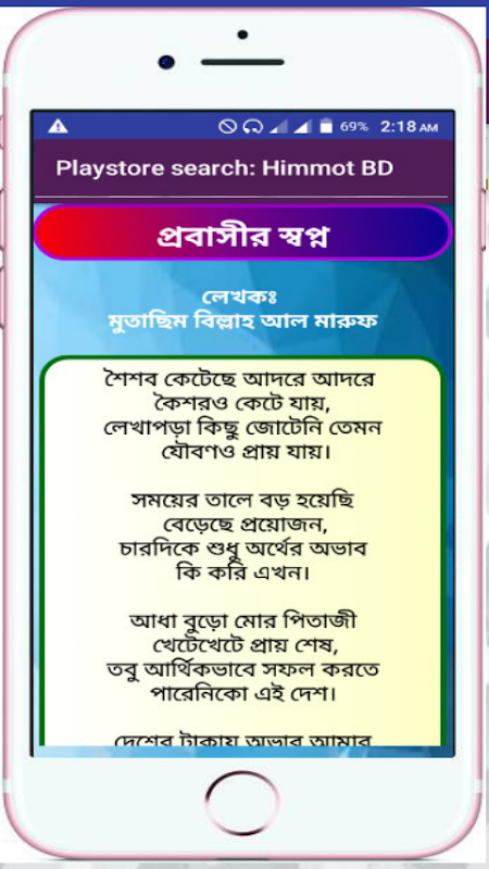 কেউ কেউতো স্বপ্ন পুরনের আশায় নিজের দেশ ছেড়ে পরি জমায় প্রবাসে। কখনো কখনো প্রবাস জীবন কষ্টের হয়, আবার কখনোবা মধুর। আর মানুষের জীবন মধুময় করতে পারে সামান্য একটু সাহিত্য প্রেম। তাই প্রবাসীদের জীবন মধুময় করার জন্য এই এ্যাপে কিছু সাহিত্য বা কবিতা তুলে ধরা হলো।