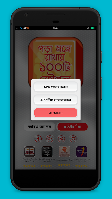 তাহলেদেরিকেন? এখনইএ্যাপটিআপনাদেরমোবাইলেনামিয়েনিন, পড়ামুখস্থকরারকৌশলরপ্তকরেজীবনকেউন্নতিরপথেএগিয়েনিয়েচলুন আমাদেরএ্যাপটিভললাগলেবন্ধুদেরসাথেশেয়ারকরুনা এ্যাপসম্পর্কেআপনারযেকোনমতামতজানাতেকামেন্টকরুন নতুনএ্যাপতৈরীতেউৎসাহদিতে 5 স্টাররেটকরুন