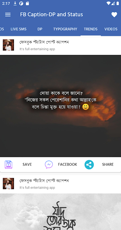 ข้อมูล ফেসবুক স্ট্যাটাস পোস্ট ক্যাপশন APK